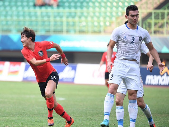 남자 축구 한국팀이 사실상의 결승전으로 불리우는 우즈벡 경기와의 전반전에서 2-1로 리드했습니다.