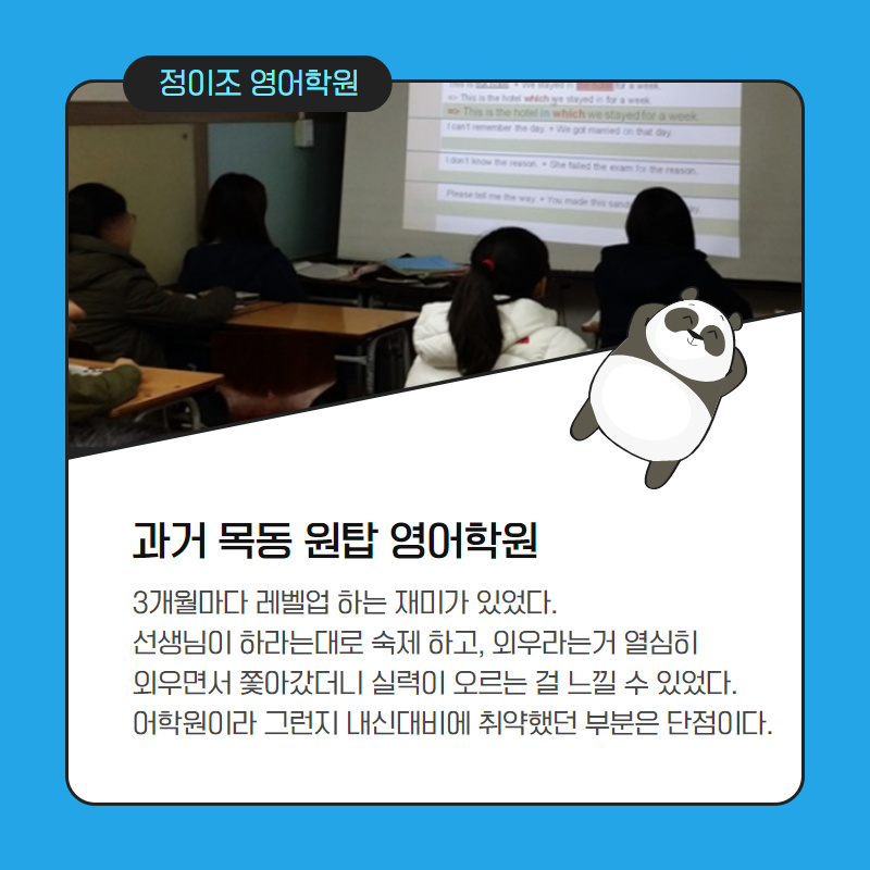 내가 한창 학원 다니던 당시의 정이조영어학원은 그야말로 원탑 목동영어학원이었다.