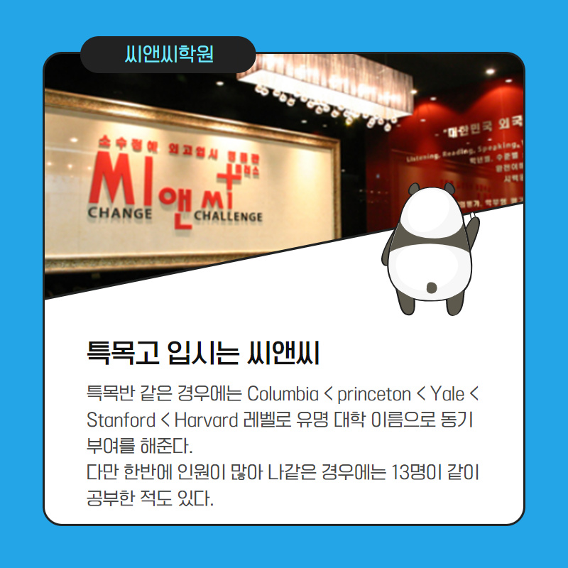 특목고의 열풍이 예전같지 않은 요즘인데도 목동에서는 아직도 씨앤씨학원이 특목고 보내는 학원으로 건재하다고 한다.