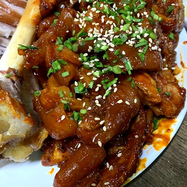 - 매운양념족발집이구요.양념이 맵지 않고 쫀득하니 맛있습니다. 다른 매운 족발집과 다르게 뼈가 없고 앞다리는 콜라겐 덩어리 더 쫀득하고 뒷다리는 양념 보쌈 먹듯 씹는 맛이 일품입니다^^