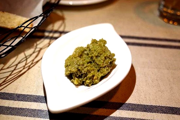 에르바에서는 먼저 올리브를 잘게 다져 만든 스프레드와 식전빵이 먼저 나오는데 특유의 바질페스토 소스에 버터를 잔뜩 바르고 거칠게 구워져 나온 식전빵은 부드러움과 고소함 그리고 깔끔하고 맛있는 바질페스토의 풍미와 함께 메인메뉴 나오기전 입맛을 돋구어준다고 해요.