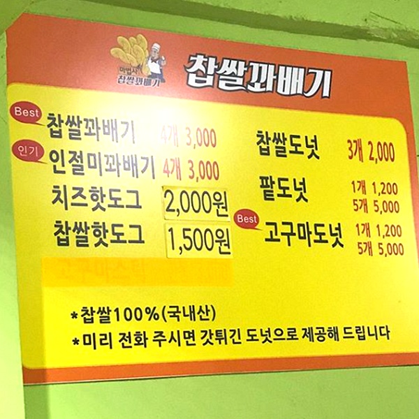찹쌀꽈배기 5개 3,000원