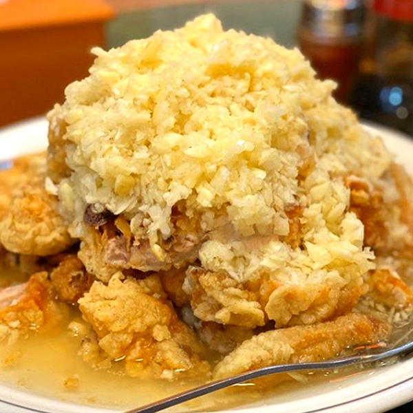 하지만 비쥬얼과 맛은 일반적인 닭튀김과는 비교 불가의 맛이라고 하는데요. 기본적으로 식초 베이스의 단촛물 위에 닭튀김을 올리고 다진 마늘을 산처럼 쌓아서 올려 나오는 음식으로 단촛물의 새콤한 맛과 양념 마늘의 알싸한 맛, 그리고 닭튀김의 고소한 맛이 한데 어우러져 정말 환상의 맛을 맛볼 수가 있다고 합니다.