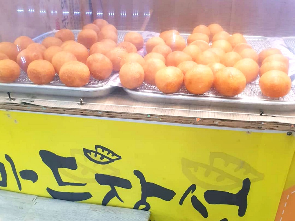 - 在孔陵鬼怪市場(공릉동도깨비시장)! 買了5個 炸年糕球 (창쌀도넛)!₩5000韓元 $135台幣!