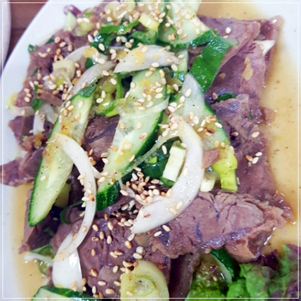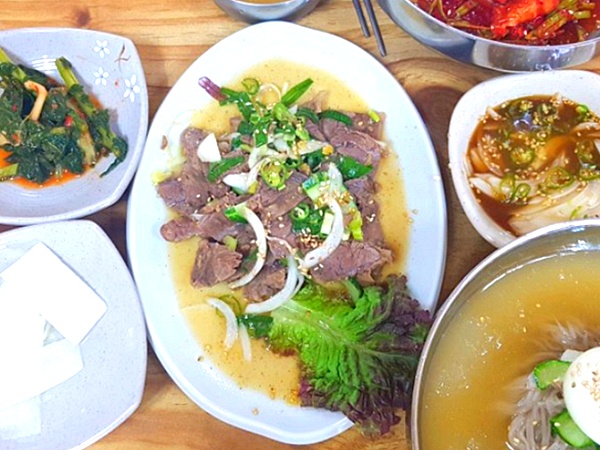 거기에 또하나의 시그니쳐 메뉴인 수육무침은 소고기 사태 부위에 특제소스를 넣고 살짝 버무린 음식으로 특별한 맛을 선사해준다고 하네요.