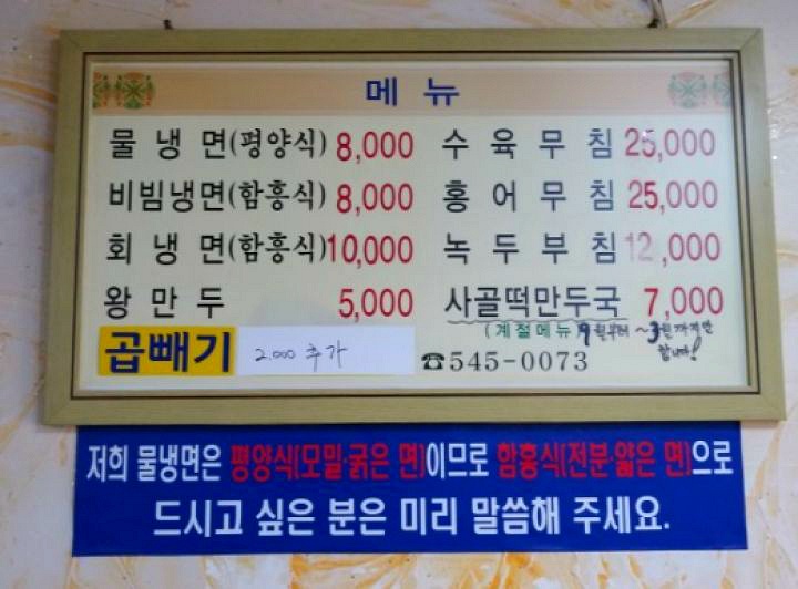 - 물냉면은 기본이 굵은 면의 평양식인데 함흥식의 얇은 면으로 먹고 싶다면 주문할 때 미리 얘기하면 된다
