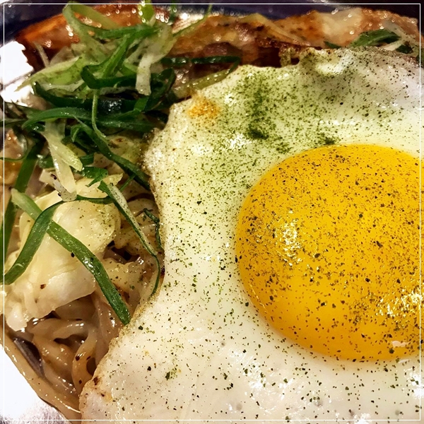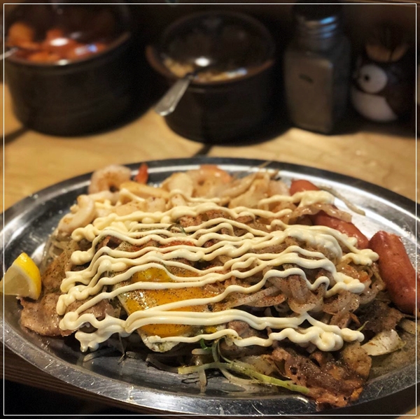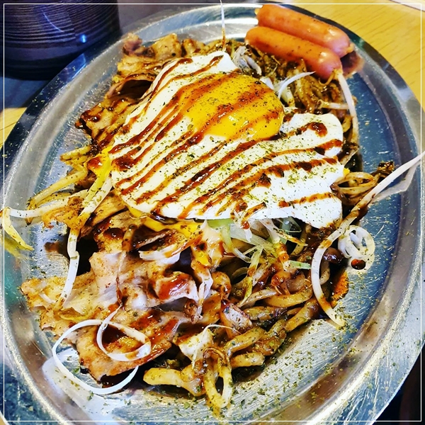소스가 일반 야끼소바처럼 자극적이지 않아 무난함. - 소스 야끼소바에 치즈를 제외한 모든 토핑 추가, 면 추가까지 해서 먹었다.(계란 프라이는 기본 한 개 나와요)