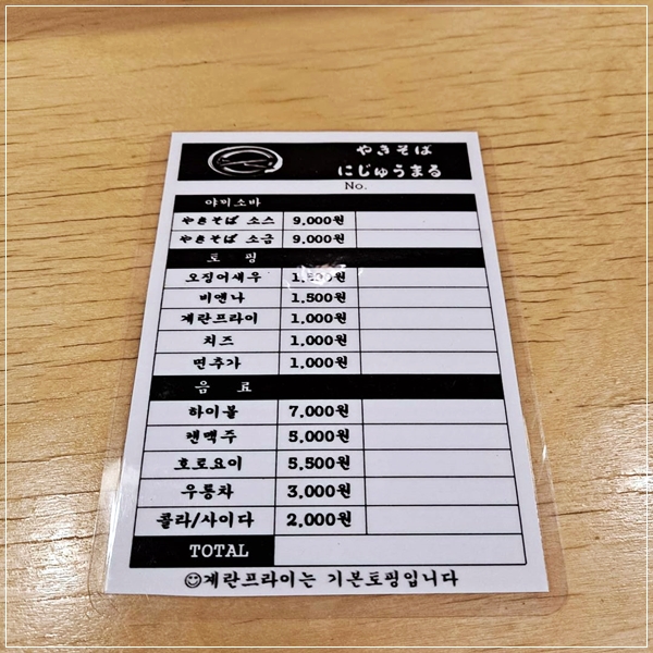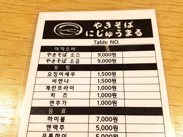 별도 테이블 없이 닷지만으로 이뤄져 장소가 협소하지만 달인의 야끼소바는 정평이 나있어 니주마루는 항상 웨이팅이 있는 송리단길 맛집중의 한곳이라고 해요.