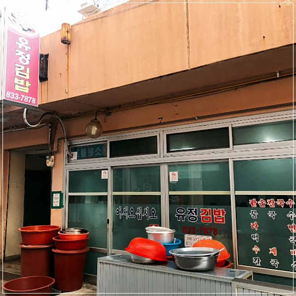 - 사진만 올려도 사람들이 알아보는 삼천포시장통의 '유정김밥'. 과하지도 부족하지도 않는 내 입에 딱 맞는 물국수와 김밥.