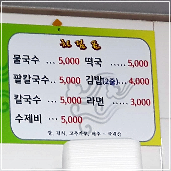 칼국수 5,000원