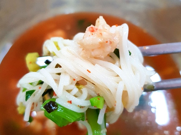 물국수는 밴댕이, 무, 파, 생새우를 넣어 육수를 낸 것이 특징인데 깊은 맛과 깔끔함을 자랑하는 밴댕이에, 생새우의 단맛이 조화로운 맛을 선사해준다고 해요.