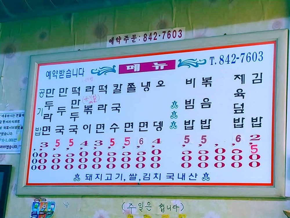 만두국 5,000원