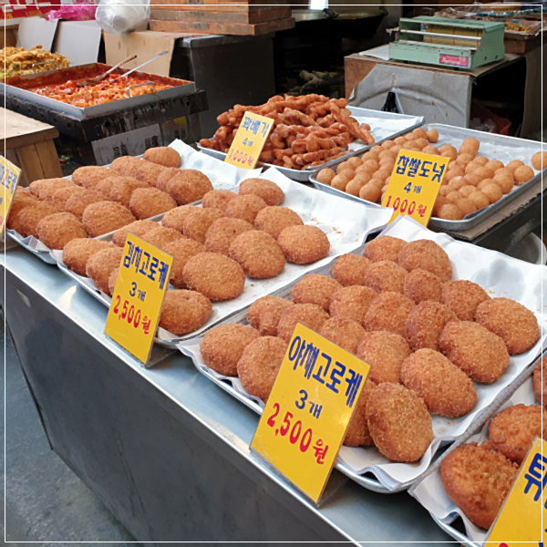 - 중리시장 골목 쪽 입구에 있는데 어떤 때 가면 사람들 줄 서서 사 간다. 가게 안쪽에서 이모님들이 부지런히 고로케를 만들어 튀기셔서 바삭하니 맛있다.