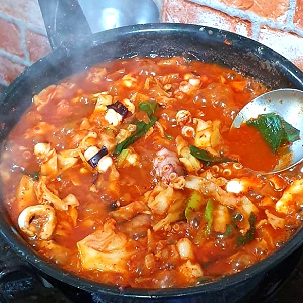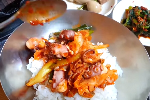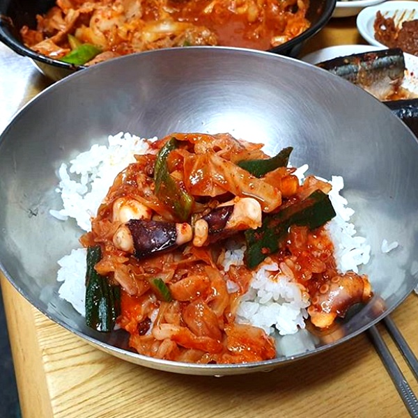 낙지볶음의 화학적인 매운맛이 아닌 건강한 매운맛과 어우러진 양푼의 흰쌀밥이 너무나도 조화롭네요.
