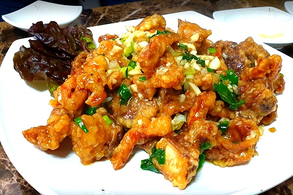 깐풍파이구라고도 불리우는 자체 개발한 돼지갈비 튀김은 마늘 소스와 곁들여 먹어야 제맛을 느낄수가 있다고 합니다.