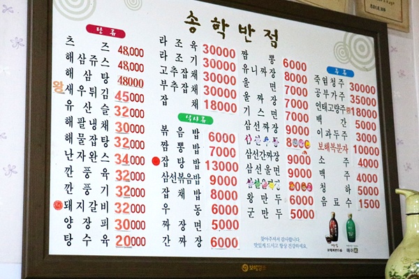 가격은 지방 중식점 치고 저렴하지는 않으나 좋은 재료를 아끼지 않고 사용하며 숙달된 숙수의 솜씨로 양이 푸짐하고 조리 시간이 짧다고 합니다. 서울의 중국집에 비해 단맛은 적은 편이라고 하네요.