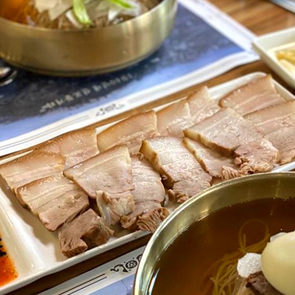 신포동을 70년 이상 지켜 온 평양식 냉면 전문점입니다. 오래된 건물이라 외관은 낡았지만, 2층으로 이루어진 내부는 특별한 장식 없이 깔끔하게 관리되는 느낌이 드는 곳이지요. 한우 1등급 소고기 설깃부위로 낸 맑은 국물에 메밀면을 말아내는 물냉면이 대표 메뉴이고, 녹두부침이 함께 나오는 세트 메뉴도 있습니다.