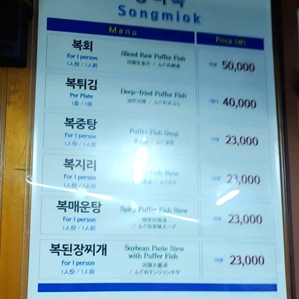 복요리 강추!!! 일본손님과 방문 - 송미옥은 한자리에서 60년 동안 복요리를 추구한 오래된 집이다. 참 놀라운건, 오랜세월이 믿겨지지 않을만큼 엄청 청결하고 깨끗하게 식당을 운영하고 있다는 것이다. 한결같은 주인장의 메인요리인 '복중탕'은 남녀노소 누구에게나 추천할 수 있는 음식이고 여기는 맛집이다!.