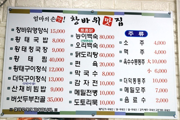이렇게 인제에서 황태 요리 맛집으로 알려진 식당은 창바위 맛집입니다.