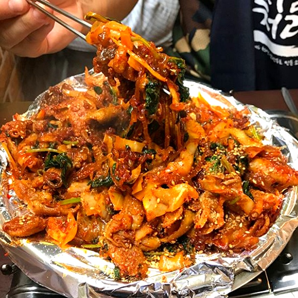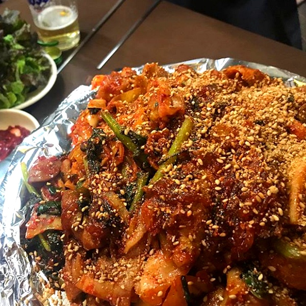 선택의 고민없이 야채곱창볶음을 주문하면 깨가 눈처럼 뿌려진 야채돼지곱창을 영접할 수 있다고 하는데요.