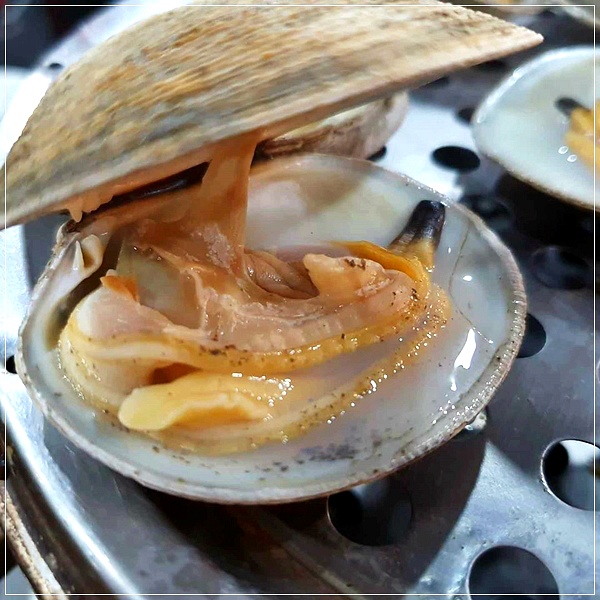 3번째 단과 4, 5번째 단에는 동죽과 백합 등 다양한 조개찜이 나오고 6번째 단에는 물만두가 들어 있고, 마지막 단에는 칼국수로 마무리 하는 8단 조개찜이라고 해요.