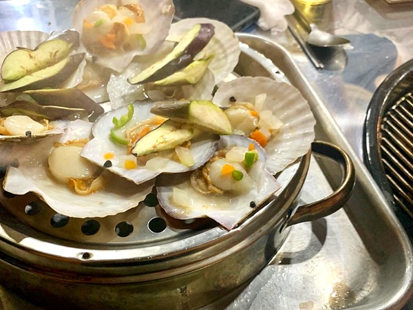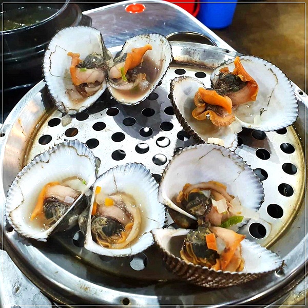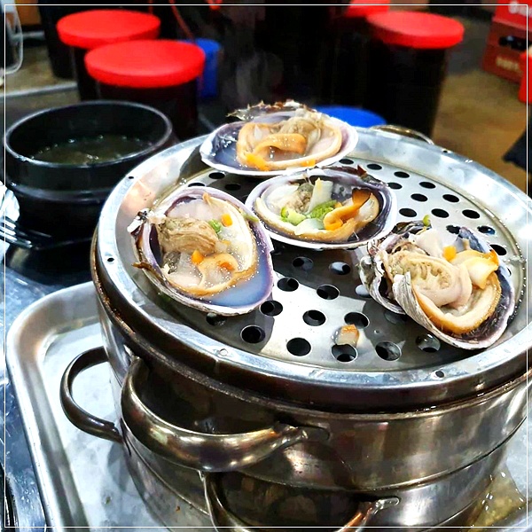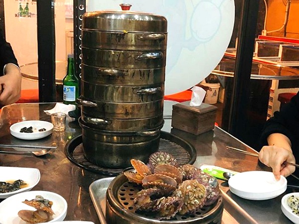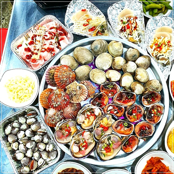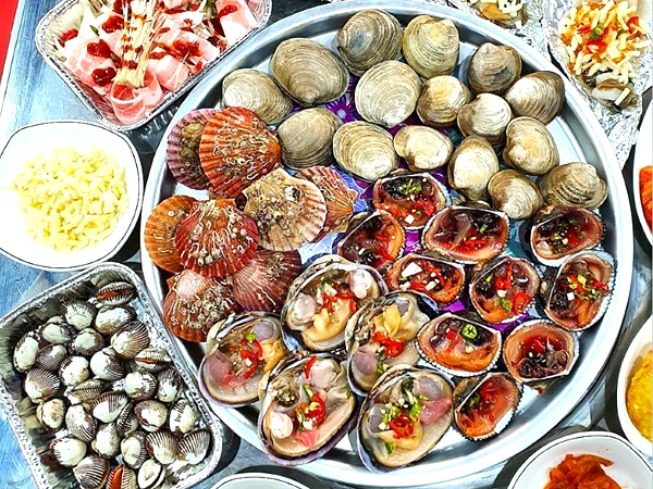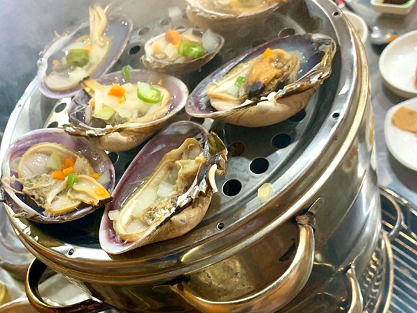 이 곳에서는 석화, 가리비, 키조개, 전복, 소라, 새우, 백합, 피조개, 홍합, 대합, 칼국수, 만두 등을 한꺼번에 맛볼 수 있는 8단 조개찜을 맛볼 수 있다고 합니다.