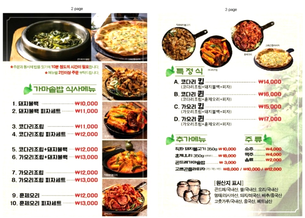 곤드레킹 식당에서는 코다리조림, 곤드레밥, 피자 정식 세트 메뉴외에도, 가오리조림, 돼지불백, 훈제오리와의 조합으로 세트메뉴가 있어 다양한 맛을 즐길수가 있을 것 같습니다.