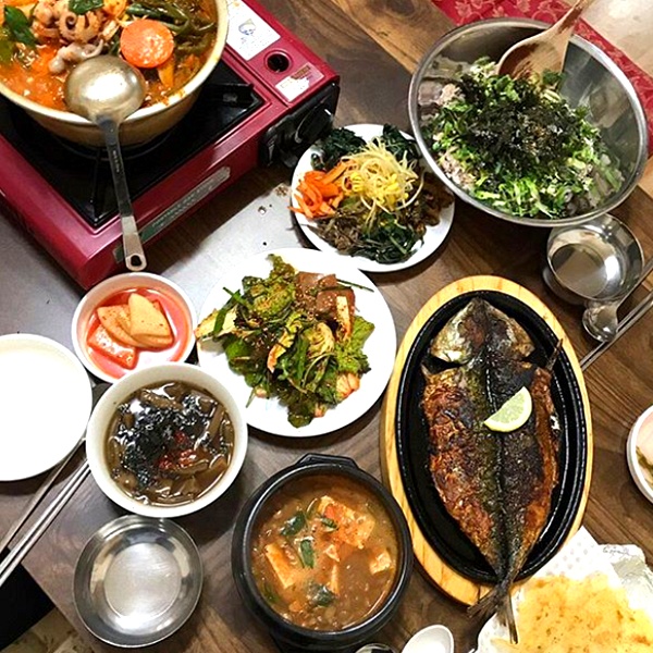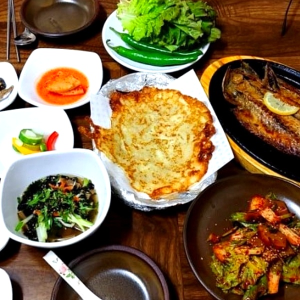 녹두 전병, 도토리묵 겉절이, 고등어구이, 묵사발, 쭈꾸미국물갈비, 나물보리밥, 된장찌개 or 청국장찌개, 솔잎차 등이 나온다고 해요.