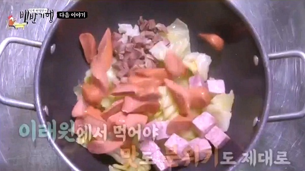 예고편 영상에서의 부대찌개에 김치는 안보이고 양배추가 가득 들어있는 것을 알 수 있네요.