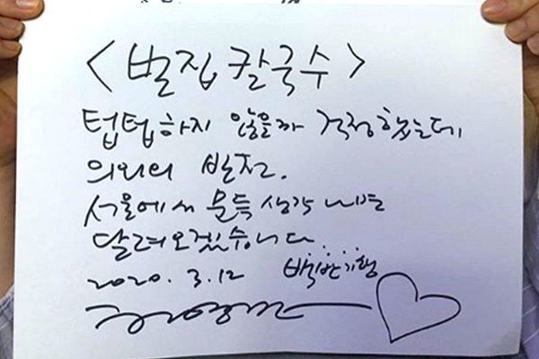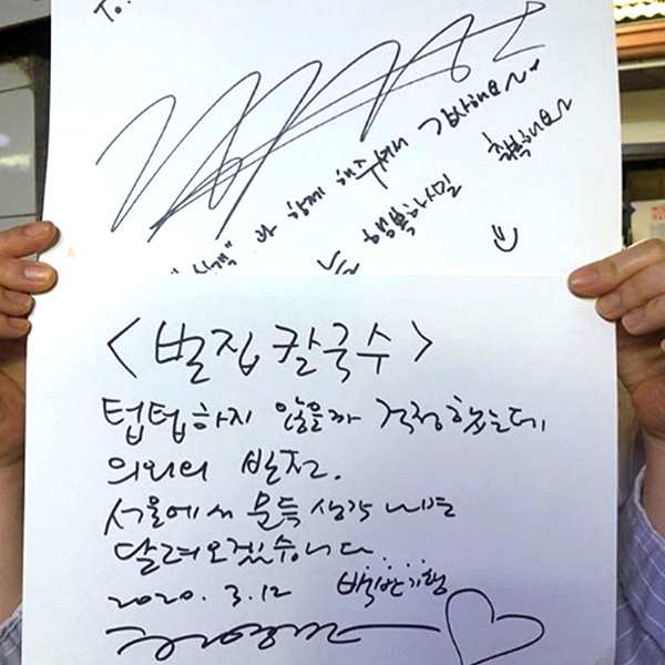 역시나 허영만, 김정화 두 식객이 친히 강릉 벌집칼국수에서 장칼국수 드신 방문 흔적을 남겨주셨네요