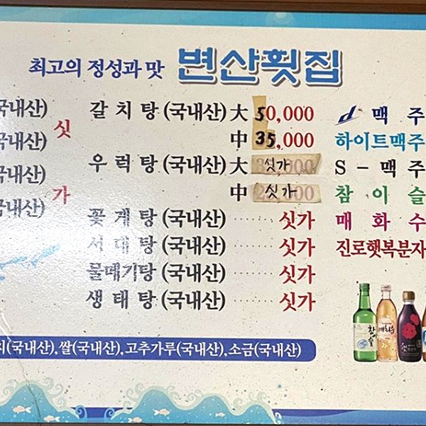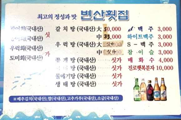 변산횟집은 고사리가 들어간 서대탕부터 갈치탕 등 봄바다의 향연을 제대로 만끽할 수 있는 부안 대표 횟집이라고 합니다.