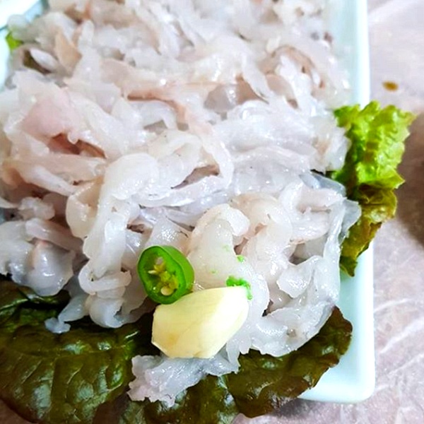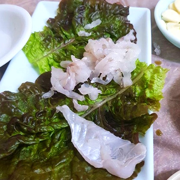 얇게 막 썰어서 나온 우럭막회는 투명하고 영롱함을 자랑하는데요.