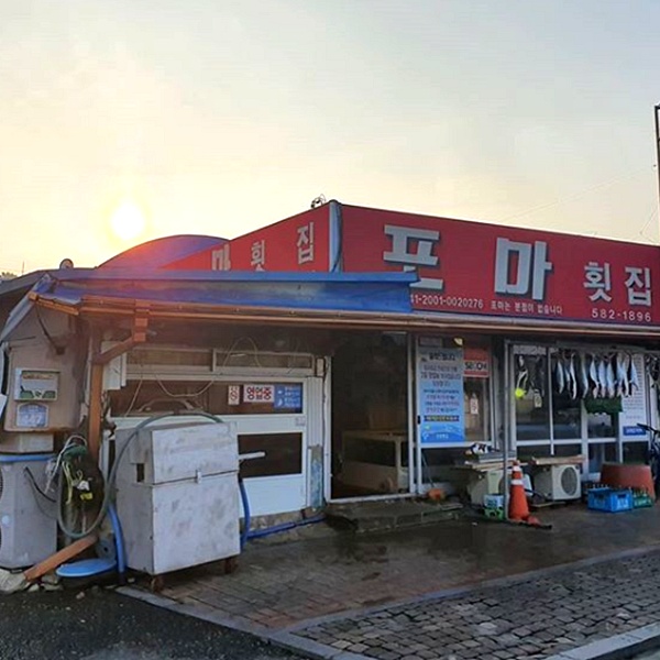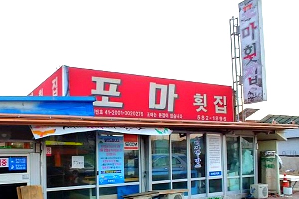 백반기행 예고편 장면에서 허영만 식객의 뒷편 알림판에 살짝 포마횟집이 보이고 던지지 말아주세요란 문구가 결정적이었네요.