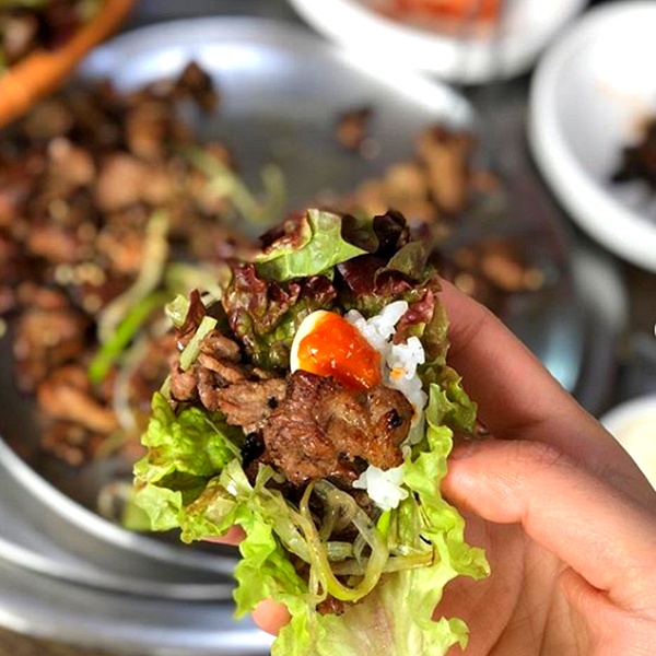 숯불향이 가득한 고기는 쌈에 싸서 먹으면 아주좋다