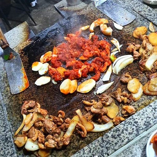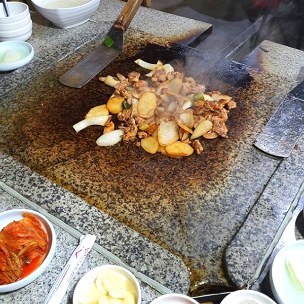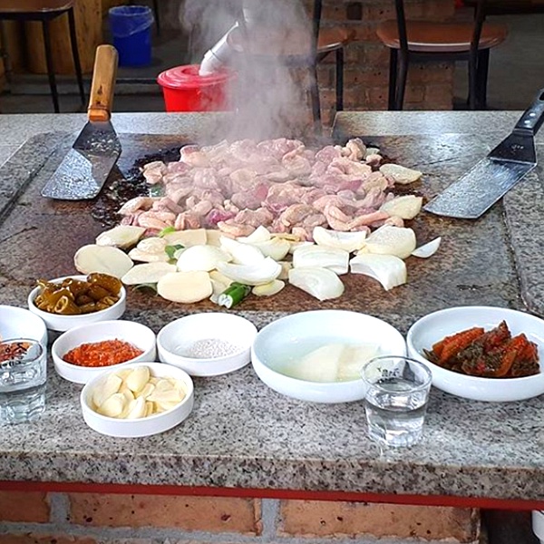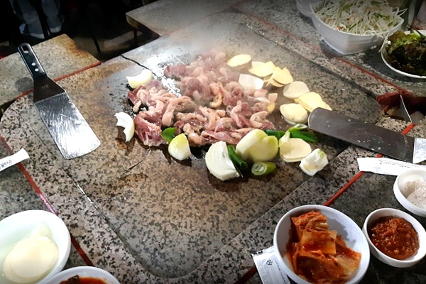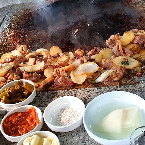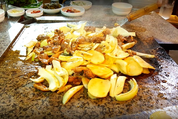 위에서도 언급되었듯이 특이하게 돌판에 구워주는 오리집으로 오리로스구이, 오리양념구이를 맛볼수가 있습니다.