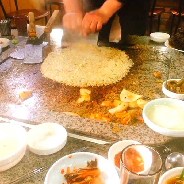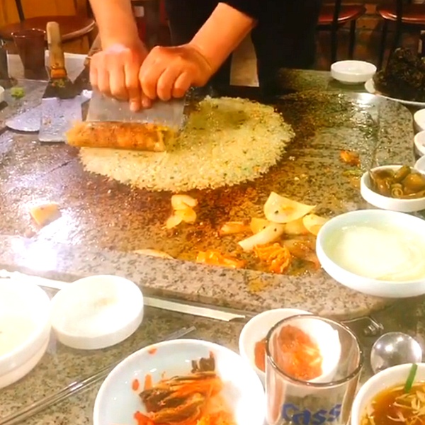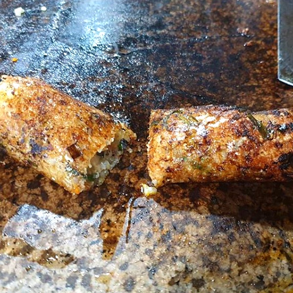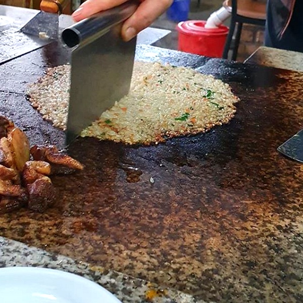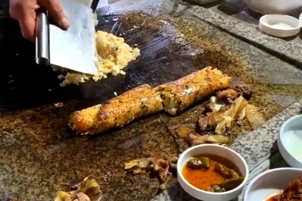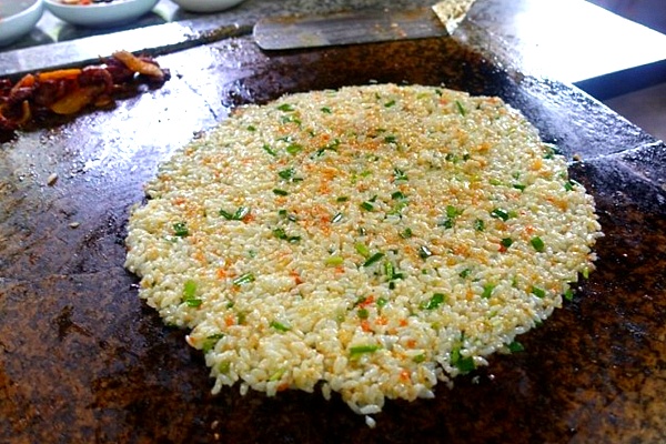돌판에 꾹꾹 눌러서 만든 볶음밥은 겉이 누룽지가 될때까지 기다렸다가 김밥처럼 돌돌말아 주는데 겉은 누룽지로 바삭하고 속은 치즈와 함께 부드러운 밥맛을 맛볼수가 있어 특별한 볶음밥을 경험해볼수 있다고 하네요.