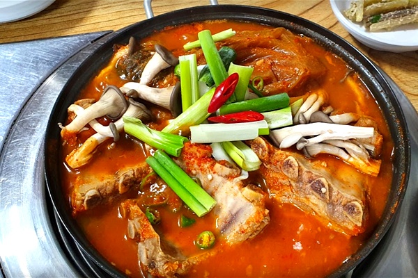 묵은지등갈비찜이나 묵은지두부전골을 시키면 사장님이 오셔서 고기도 잘라주시고 묵은지도 맛있게 잘라주신다고 해요. 묵은지는 자극적이지 않게 매콤하고 감칠맛이 나 밥을 부르는 밥도둑이라고 하며, 등갈비찜에 들어있는 고기 역시도 푸짐한 양과 묵은지에 싸먹는 맛이 일품이라고 합니다.