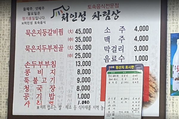 해당 식당은 처인성 토속음식 식당으로 추정됩니다.