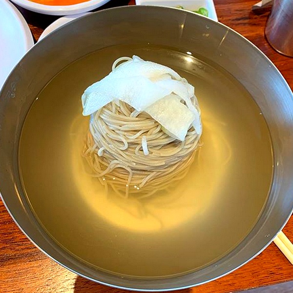 - 들기름막국수와 비빔막국수 모두 맛있었구요, 곁들어 나온 김치도 맛있었는데, 동행인인 그 김치국묵을 비빔막국수에 부어 먹더라구요. 김치도 간이 쎄지는 않아서 김치말이국수 먹는거 같은 느낌? 여튼,, 대기시간에 대한 각오가 다시 선다면,, 또 가게될거같네요.