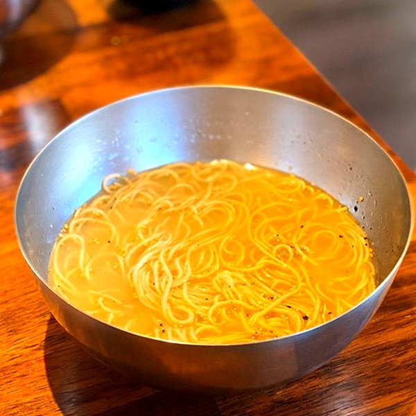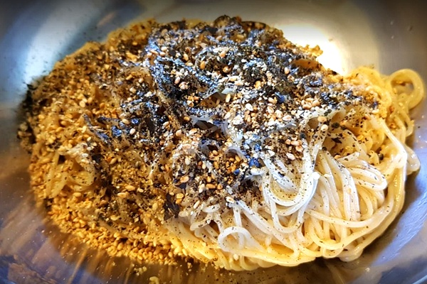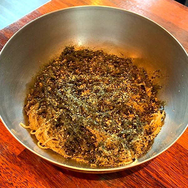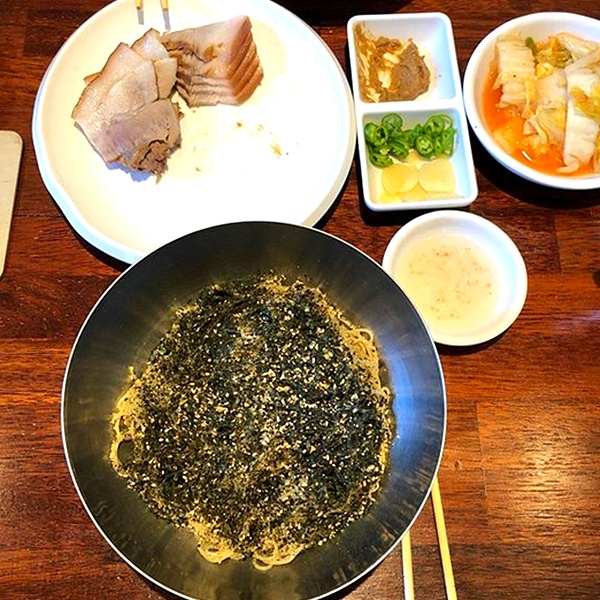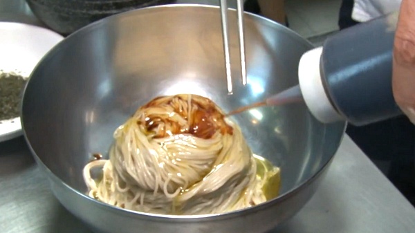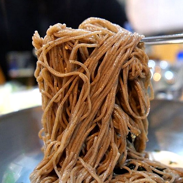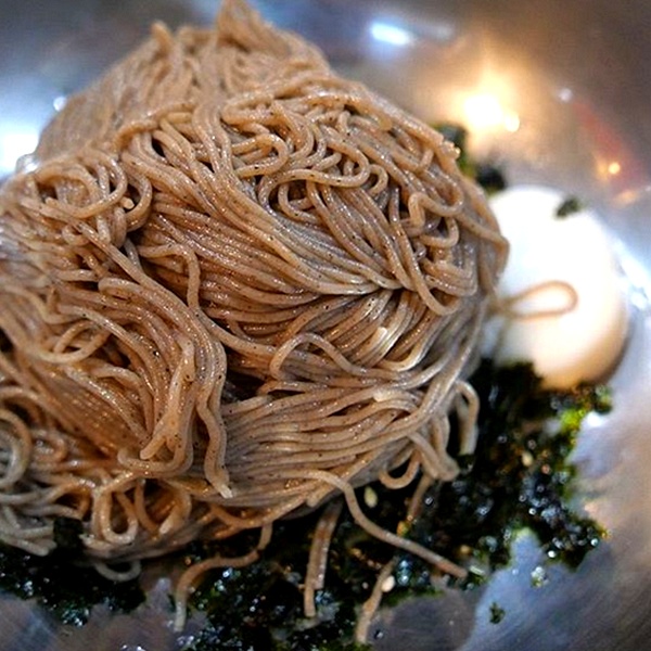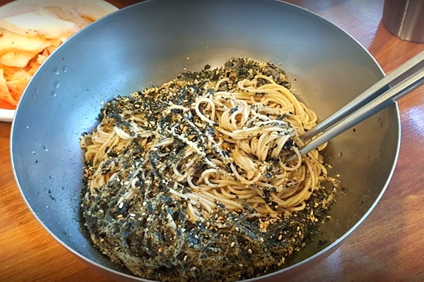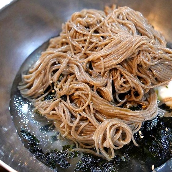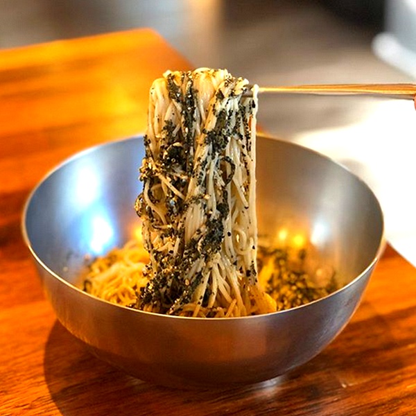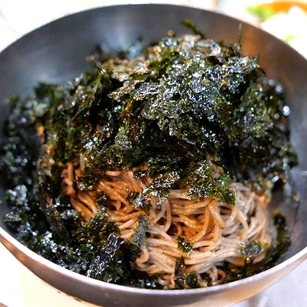 젓가락으로 부드럽게 비벼 한 입 물면 지그시 눌려 씹히는 구수한 메밀 면 사이로 들기름의 쌉싸름한 맛이 올라오는데 들기름과 메밀 면, 김과 참깨 등등의 재료들이 각각 본연의 향과 맛을 내면서도 조화롭게 어우러져 오묘한 맛을 낸다고 합니다.
