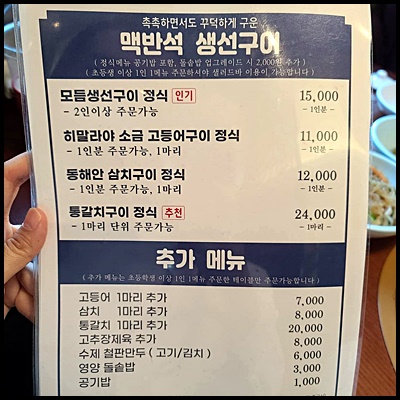 다른 생선구이와 다르게 해풍에 말린 꾸덕한 생선으로 구어져 쫄깃한 맛이 좋았습니다.
