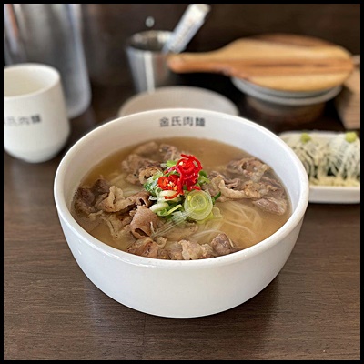 김씨육면의 전체적인 육수 맛에 대한 평으로는 우리나라 잔치국수와 일본 돈코츠라멘 사이 정도의 굵직함을 가진 돼지육수 맛이라고 합니다. 이 육수에 정성이 가득 들어갔다고 하는데 해물, 닭, 돼지 육수를 잘 배합해 만든 육수로 돈코츠라멘의 느끼함이 부담스럽다 하시는 분들에게 아주 딱이라고 하네요.