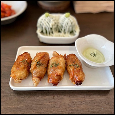 겉바속촉 닭껍질교자와 마요와사비소스의 환상조합