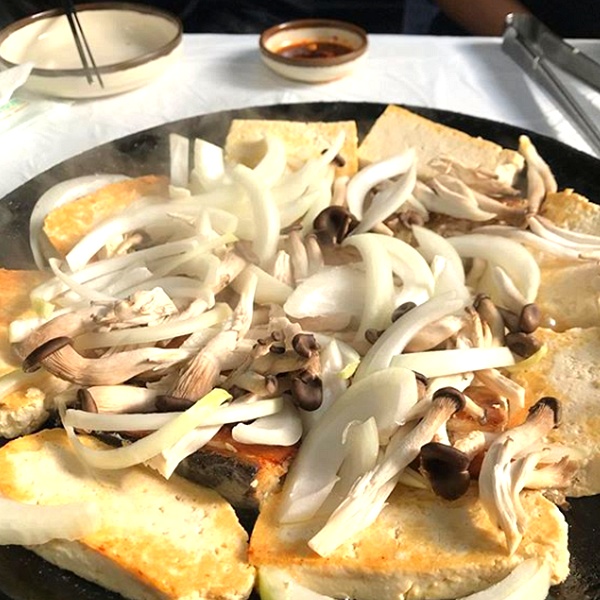 고등어 두부구이는 두부와 고등어, 버섯이 솥뚜껑에 조화롭게 나오고 들기름을 둘러 구워지는 모습에 눈이 즐겁다. 정갈한 반찬들과 고소한 콩비지에 밥이 맛난다.