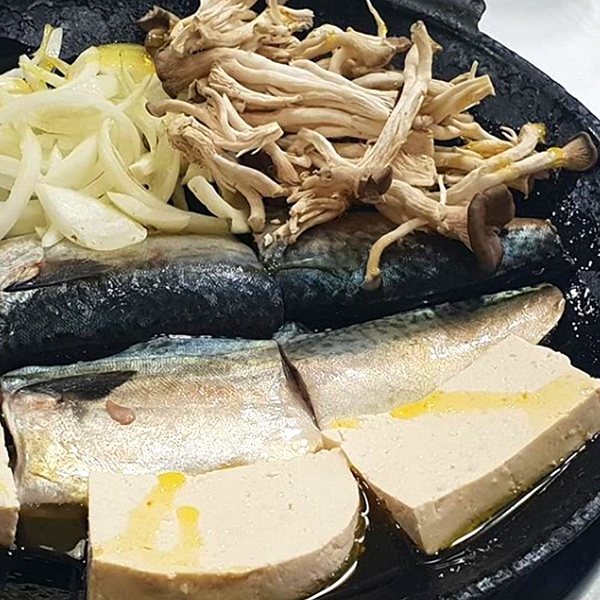 처음 고등어두부구이를 접한 분들은 두부과 고등어, 느타리 버섯과 양파위에 무심하게 휘둘러 뿌려진 들기름까지 과연 이 조합은 어떤 맛이 날까 의문에 쌓이게 만든다고 하는데요.
