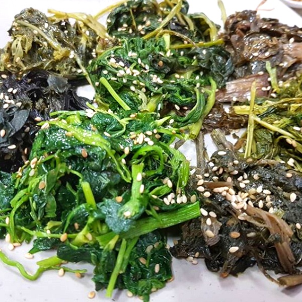 기본 상차림에 8~9가지 나물이 올라오는데요. 사진만 봐도 건강한 느낌이 나지 않나요?