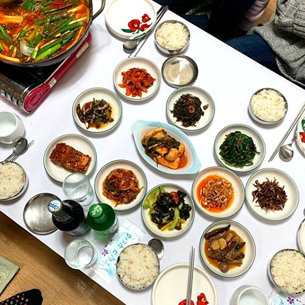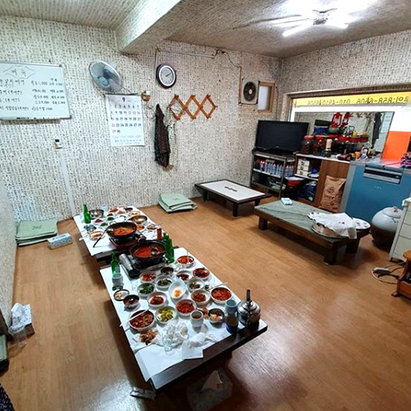 미리 예약을 하고 가야 하기 때문에 상차림은 11첩이나 되는 반찬들이 미리 셋팅이 되어 있어 웬만한 한정식 집 저리가라 할 정도라고 해요.