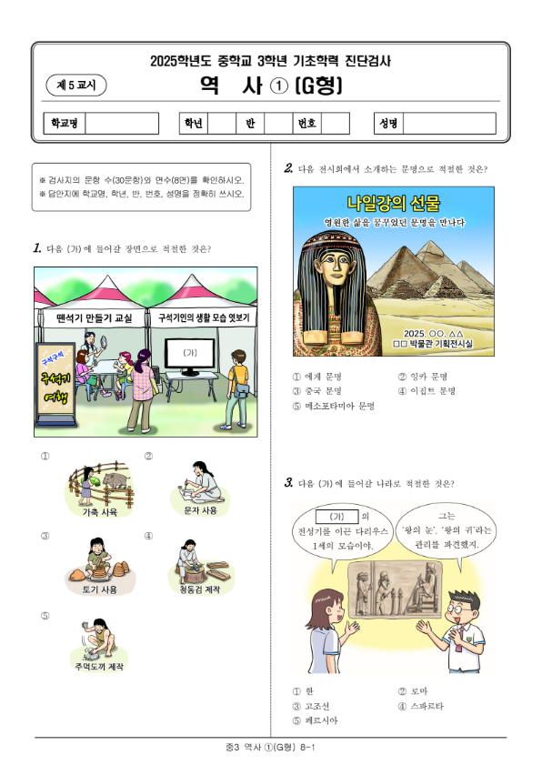 2025년 중3 진단평가 역사 캡쳐