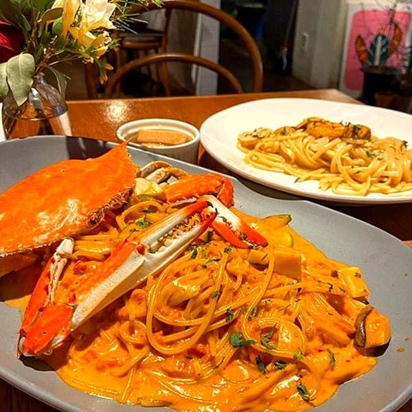 완전 유명한 게살 로제 파슷하에 우니 파슷하를 주문했어요!! (*´◒`*) 게살 로제 파스타 진짜 맛있어요! 진짜 눈 땡그래지는 맛이에요~~ 저는 게살 로제 파스타에 게딱지는 데코인줄 알았는데 게살이 꽈악 다 차있더라고요. 게 한마리가 들어간 파스타였어요🤩 소스도 너무 맛있고 달아서 좋았어요(((o(*゚▽゚*)o)))♡ 면도 제 취향! 꾸덕꾸덕 좋아요!!♥️ 우니파스타는 바다향이 확-! 났어요. 성게알이 꽤 많이 들어있더라고요. 요기 재료를 아끼지않는 느낌이에요!