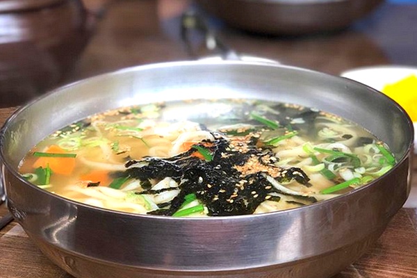칼국수는 한국의 국수 요리 중 하나로 영어로는 Noodle Soup 또는 Kalguksu. 예전에는 Knife Noodles나 Knife-cut Noodles 따위의 표기도 쓰였으며, 그 뒤 농림수산식품부가 한식 메뉴 124개에 대한 외국어 표준 표기안을 마련하면서 칼국수의 외국어 표기를 이렇게 바꿨습니다.